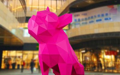 卡通豬雕塑公仔,玻璃鋼豬年卡通豬仔造型雕塑